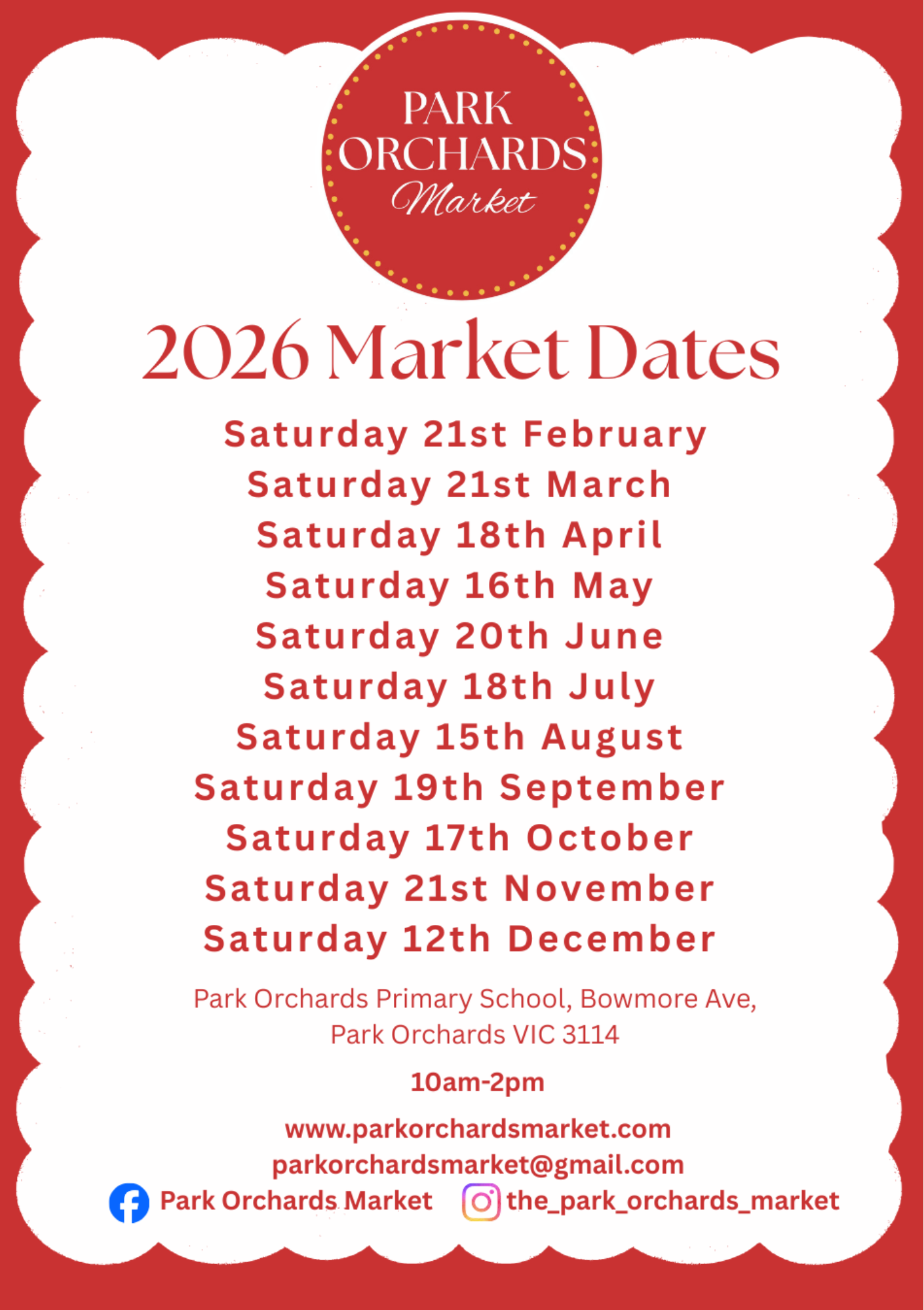 The Park Orchards Market is a community market, where the emphasis is on providing a warm and welcoming environment for all to enjoy! Located perfectly between the Yarra Valley and the Melbourne CBD, we offer a carefully curated and eclectic mix of quality stalls, selling great produce from the Yarra Valley and surrounds, exquisite arts and crafts as well as quality urban wares. It’s a foodies paradise and a wonderful place for creative souls to gather! The market is proudly supported by local community group PORA – Park Orchards Ratepayers Association.